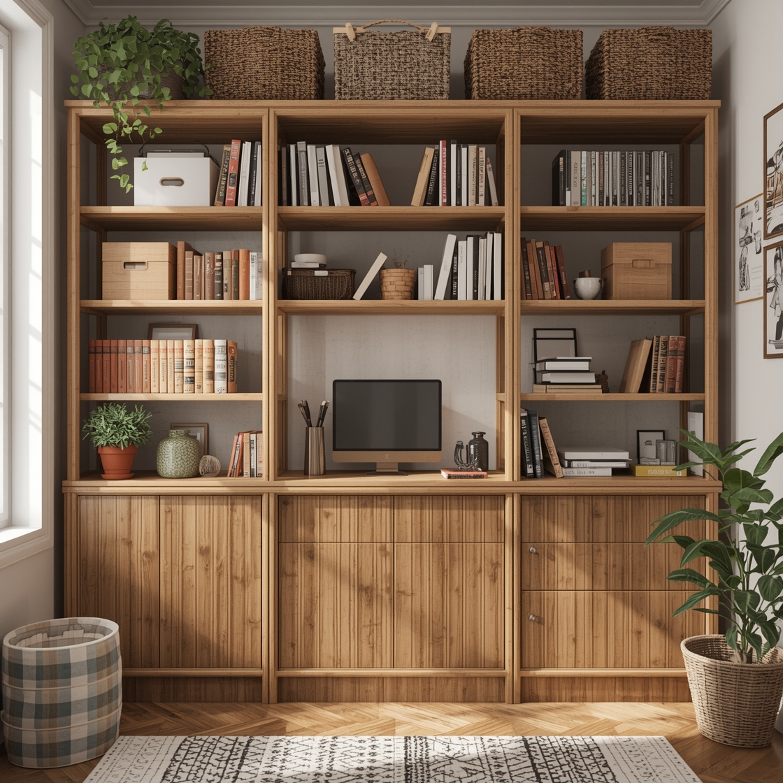 I snagged some open shelving (seriously—thank you, IKEA) and used it as a room divider. By sticking plants and decorative boxes on it and placing some books on the other side, I created a mini “office nook.” It felt so good to separate work and chill time. Plus, this definitely made it easier to pretend I was actually productive during Zoom calls.