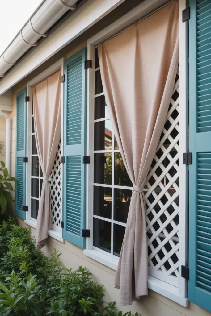 If “homey meets hurricane” is your aesthetic, consider installing lattice panels on your shutters and draping weather-resistant fabric across them. Textured fabrics can add a bit of softness that contrasts beautifully with harsh weather.