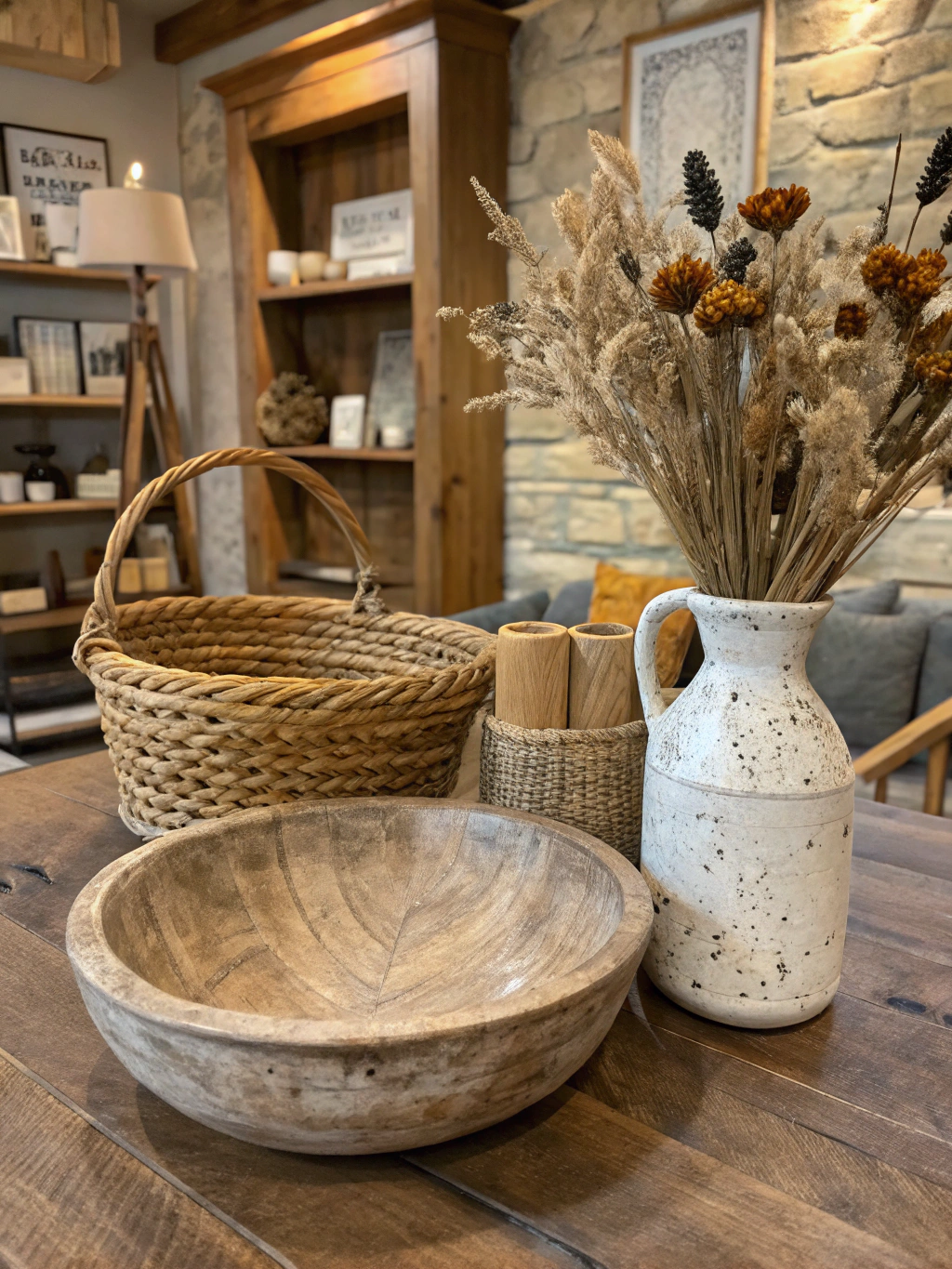 • Add a statement piece: Maybe an antique clock or an old wooden spoon—whatever whispers to you.