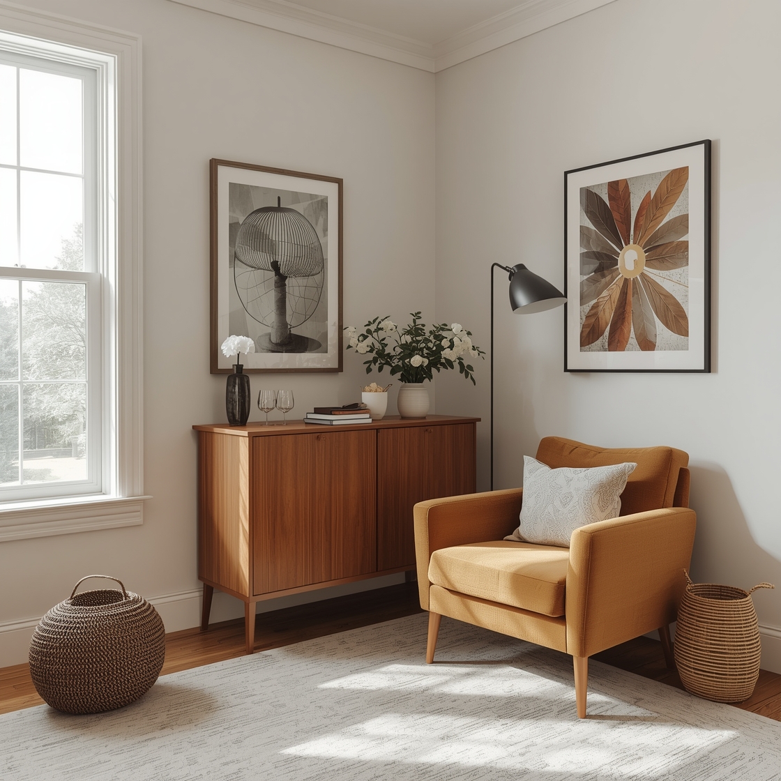 If you’ve got a bare wall looming over your awkward corner, it’s time to break out the art. Hang some colorful artwork (or, let’s be honest, your kids’ masterpieces from last year if you’re feeling sentimental). I’m a huge fan of gallery walls – nothing says “I’m artsy” like a collection of mismatched frames showcasing your eclectic taste.