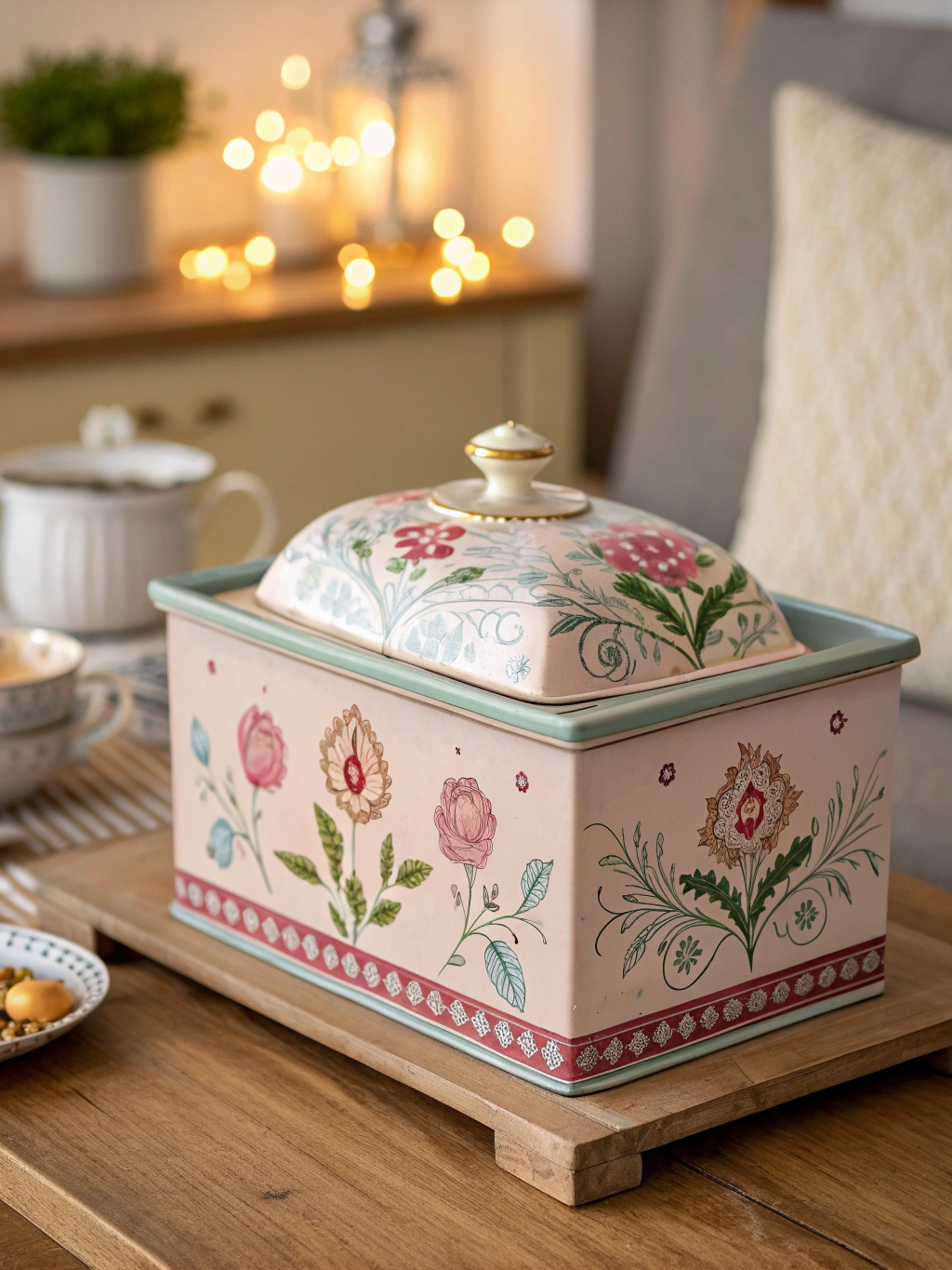Did I mention I love multifunctional items? A vintage trunk or an ornate garden table can serve as both decor and a clever cover. Picture a beautiful wooden trunk decorated with flowers on top.